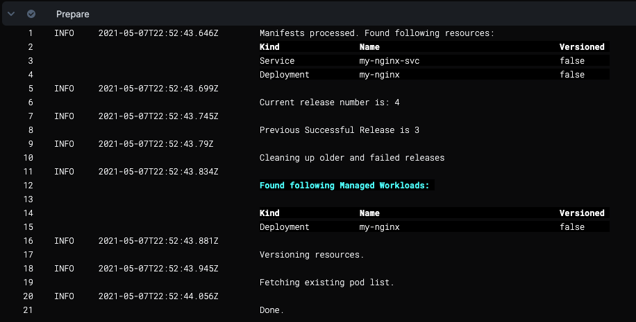 Now that Harness has ensured that manifests can be used, it will process the manifests.