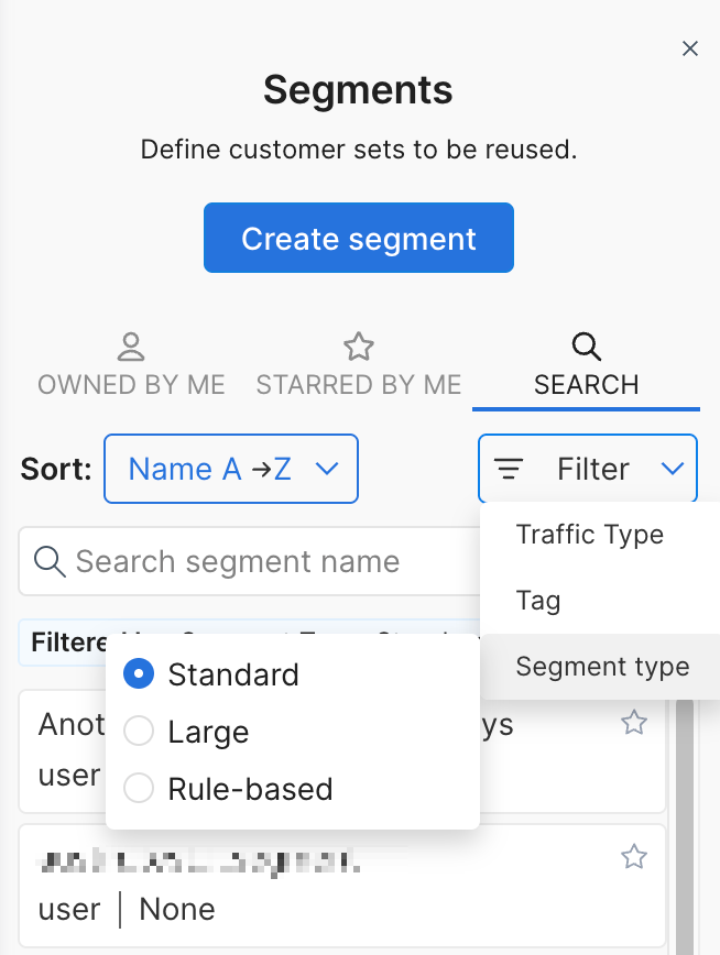 Traffic type. Select a traffic type for this segment. The feature flags that target this segment must be assigned the same traffic type.