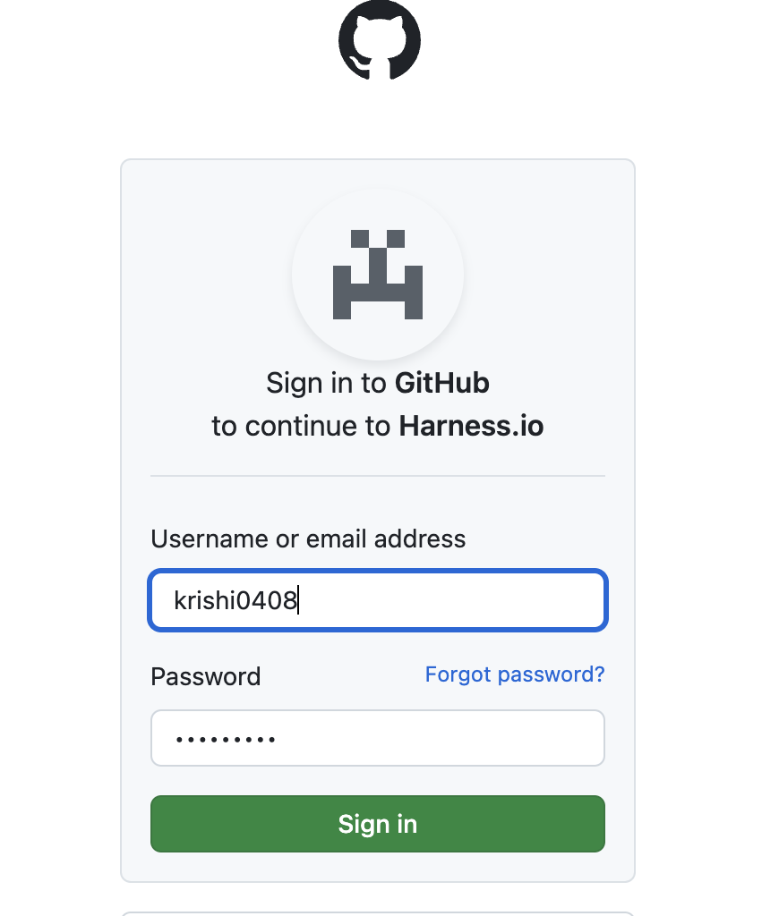 3. Sign in to your Github account and authorize Harness.io. Once done you will see Oauth Configured successfully in the profile page along with your Github account username under Access token for Git Providers
